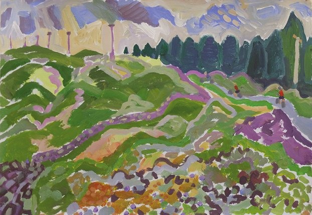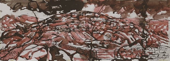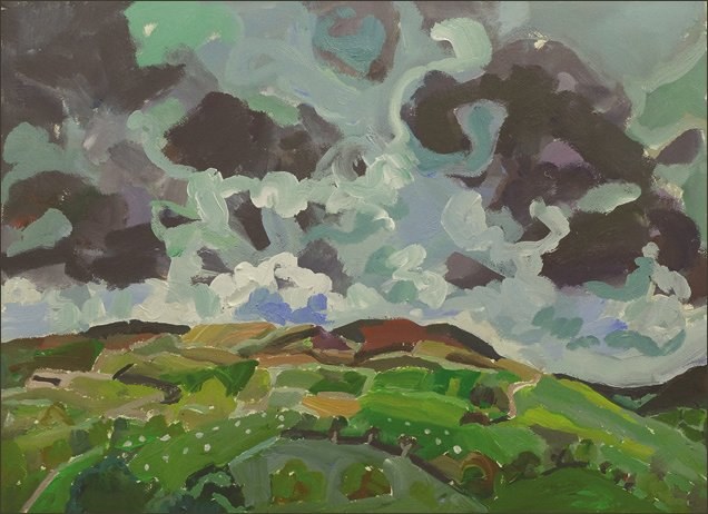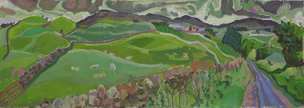 David’s figurative paintings are not peopled or ‘staffed’ in the Romantic sense, to give scale to the immensity of the landscape. His paintings allow us to see and experience an integration of the figure and the land that reveals that people and place are often indivisible. These are paintings about real people, people who are part of the landscape in which they live and who are also part of David’s life. Their experiences are his experiences; they share a history and a relationship with the land and understand each other in ways that go deep below the surface. Cumbria as we know it today is the result of millions of years of geological activity. The final form of a painting too is often the result of turmoil, upheaval, changes of mind, re-working, experiment and discovery. Finding ways through painting to tell stories honestly and to give them form requires persistence, imagination, skill and, most importantly of all, something to say that is truly heartfelt.